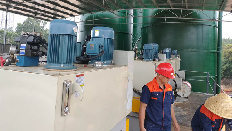压紧过滤板低压油泵启动开始加载,滤板开始闭合,当压力大于5MPa时,低压油泵停机,高压油泵启动。当压力达到设定值(目前设定值在30——34 MPa)时,高压油泵停止工作,茄子污视频在线观看闭合工作完成。